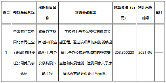 為便于供應(yīng)商及時(shí)了解政府采購(gòu)信息,根據(jù)《財(cái)政部關(guān)于開展政府采購(gòu)意向公開工作的通知》(財(cái)庫(kù)[2020]10號(hào))等有關(guān)規(guī)定, 現(xiàn)將中國(guó)共產(chǎn)黨中國(guó)北京同仁堂(集團(tuán))有限責(zé)任公司委員會(huì)黨校 2021 年4 (至)12 月采購(gòu)意向公開如下: