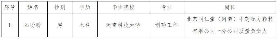 根據(jù)《北京同仁堂中藥配方顆粒投資有限公司招聘工作方案》,通過網(wǎng)上發(fā)布公告、簡歷篩選、資格審查、面試、筆試、人事檔案核查等招聘環(huán)節(jié),經(jīng)配方顆粒公司黨支部會議審議通過,擬招聘以下人員,現(xiàn)公示如下: